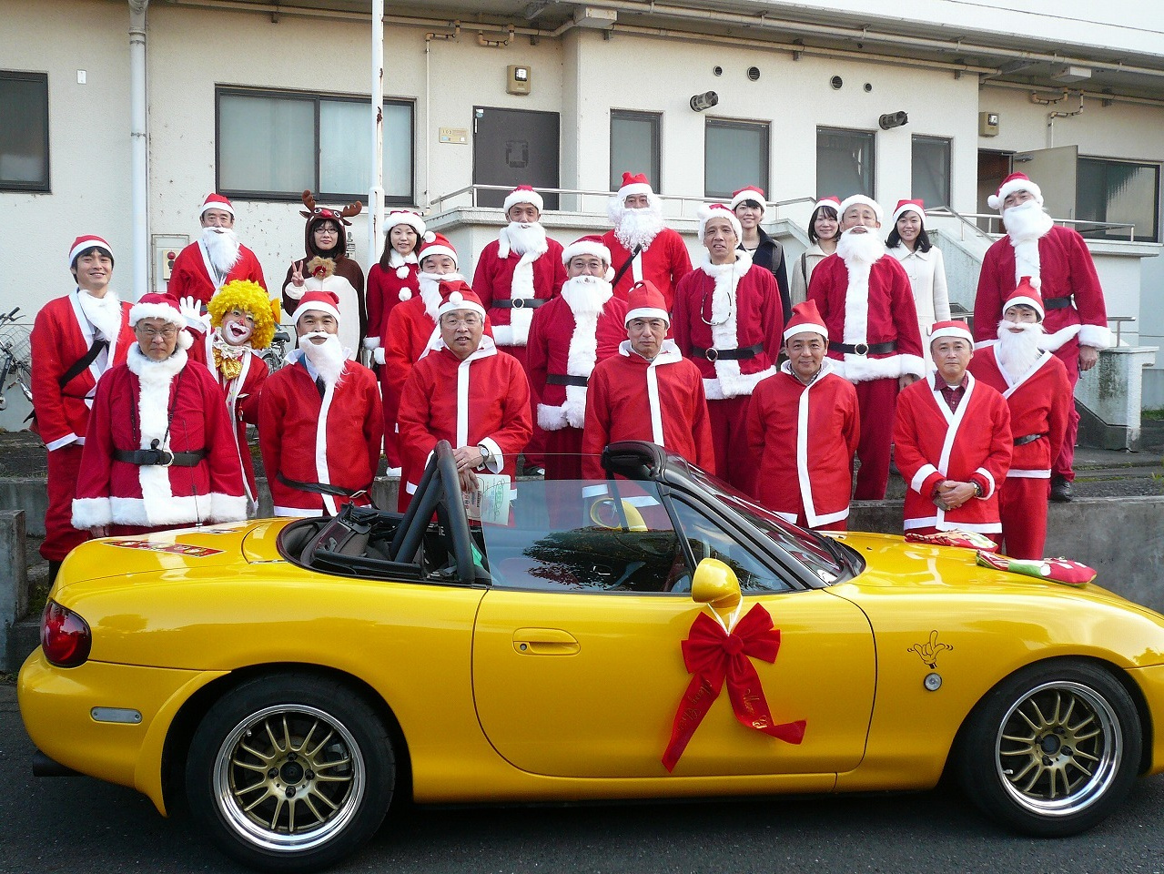 サンタがオープンカーで施設に訪問し、笑顔を届けました!