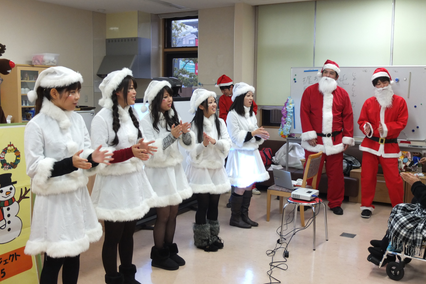 サンタがオープンカーに乗って、6施設を訪問しました。訪問先の施設ではプレゼントを渡したり、音楽やゲームなどのみんなが楽しめる芸を披露したりと、たくさんの「笑顔」を届けました!